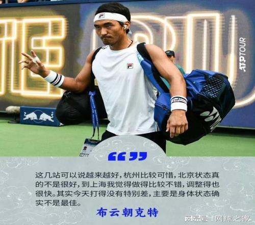 对于中国赛季的整体表现,布云朝克特总结道:“打得越来越好,杭州是比较可惜,北京的状态不是很好,精神上和身体上都比较一般,到上海做得不错,调整得比较快。”