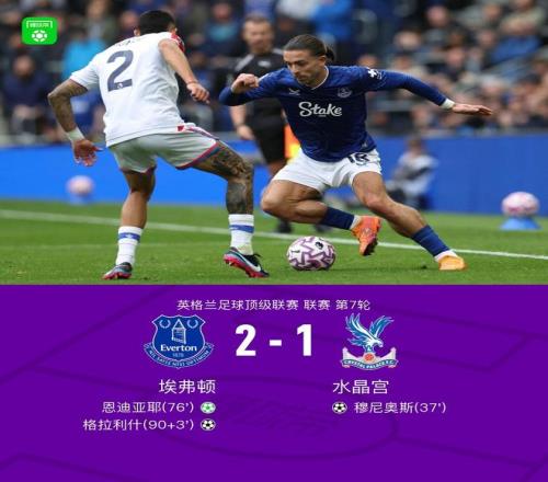 北京时间10月5日,英格兰足球超级联赛第7轮展开角逐,埃弗顿坐镇主场迎战水晶宫。比赛中,水晶宫率先打破僵局,伊斯梅拉-萨尔送出助攻,穆尼奥斯成功破门,帮助客队取得领先。随后,恩迪亚耶主罚点球扳平比分。比赛进入补时阶段,格拉利什挺身而出,打入关键进球,助力球队实现逆转。最终,埃弗顿以2比1战胜水晶宫,收获宝贵三分。