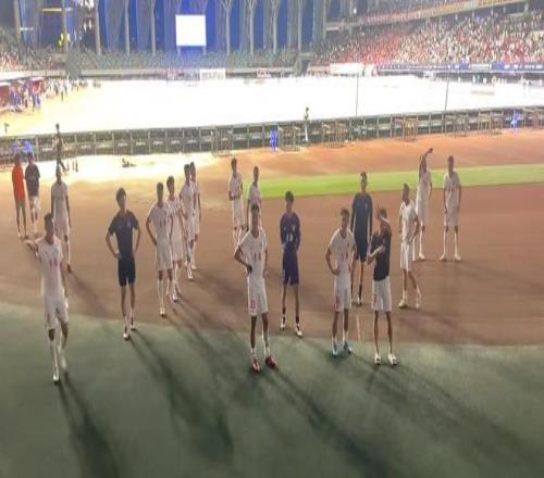 记者:青岛海牛队今天下午重新集结,全力备战剩余4轮比赛