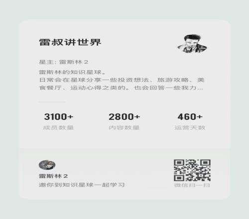 搞了个知识星球,名字叫【雷叔讲世界】。