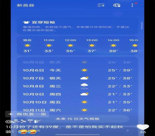 绍兴一个县在中秋节那天出现了39度。