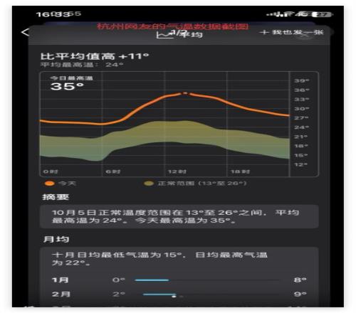 杭州的高温是比平均值高了11度,这已经很夸张了。