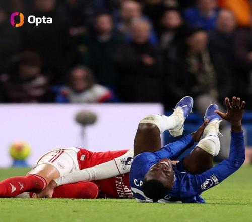 英超第13轮,切尔西主场对阵阿森纳,切尔西中场凯塞多上半场因踩踏染红,他是第7位英超对阵阿森纳染红的切尔西球员,也是自2017年的大卫-路易斯以来第一人。