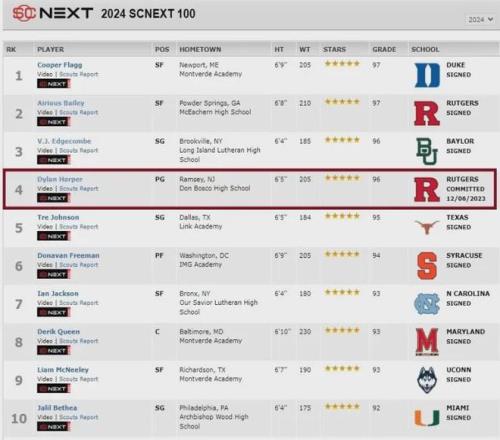 众多NCAA D1级名校均向他发出招募邀请,但他最终受到哥哥影响,选择了哥哥曾效力四年的罗格斯大学,该校球队在NCAA联盟并不属于强队,球队自1906年建队以来总计只打进过8次疯狂三月,而小罗恩-哈珀是这球队的传奇,在2021、2022连续两年带领球队打进了疯狂三月,他和球队主教练史蒂夫-皮基尔情如父子,在哥哥的积极招募下,弟弟迪伦也加入这所大学,而且还有一个重要原因就是在迪伦之前,罗格斯大学还破天荒的招募到了百大高中生排名第2的艾斯-贝利,这也是校史招募到的排位最高的高中生,后来经媒体披露,罗格斯大学在招募贝利的见面会中明确承诺迪伦一定会加入球队,两名全美数一数二的高中生双剑合璧.